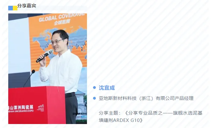 亞地斯新材料科技(浙江)有限公司產(chǎn)品經(jīng)理沈宜成在本次演示會(huì)上進(jìn)行了成果分享,主題為:《分享專業(yè)品質(zhì)之——旗艦水選泥基填縫劑ARDEX G10》;