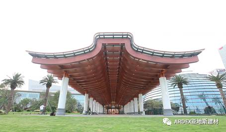 會議中心的東西兩側(cè)各有一條迎賓長廊,是整個(gè)會場的“門面”,也是各國領(lǐng)導(dǎo)人步入會場必經(jīng)之地。長廊融入廈門市花鳳凰花和廈門傳統(tǒng)建筑山墻的造型,取名“丹冠飛羽”,由48樘“幾”字形銅梁組成,造型獨(dú)特、氣勢恢宏。